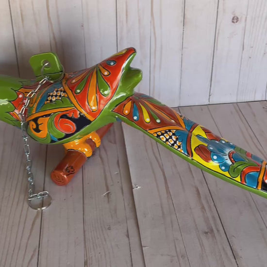 Add a touch of vibrant Mexican art to your home or garden with this beautiful Talavera Hanging Parrot. Handcrafted and hand-painted by skilled artisans, each piece features bright colors, detailed and unique artistry that make it one of a kind. Perfect to hang indoors, on a patio, or in a garden space, this parrot brings joy, culture, and charm wherever it is displayed. 🌺🦜