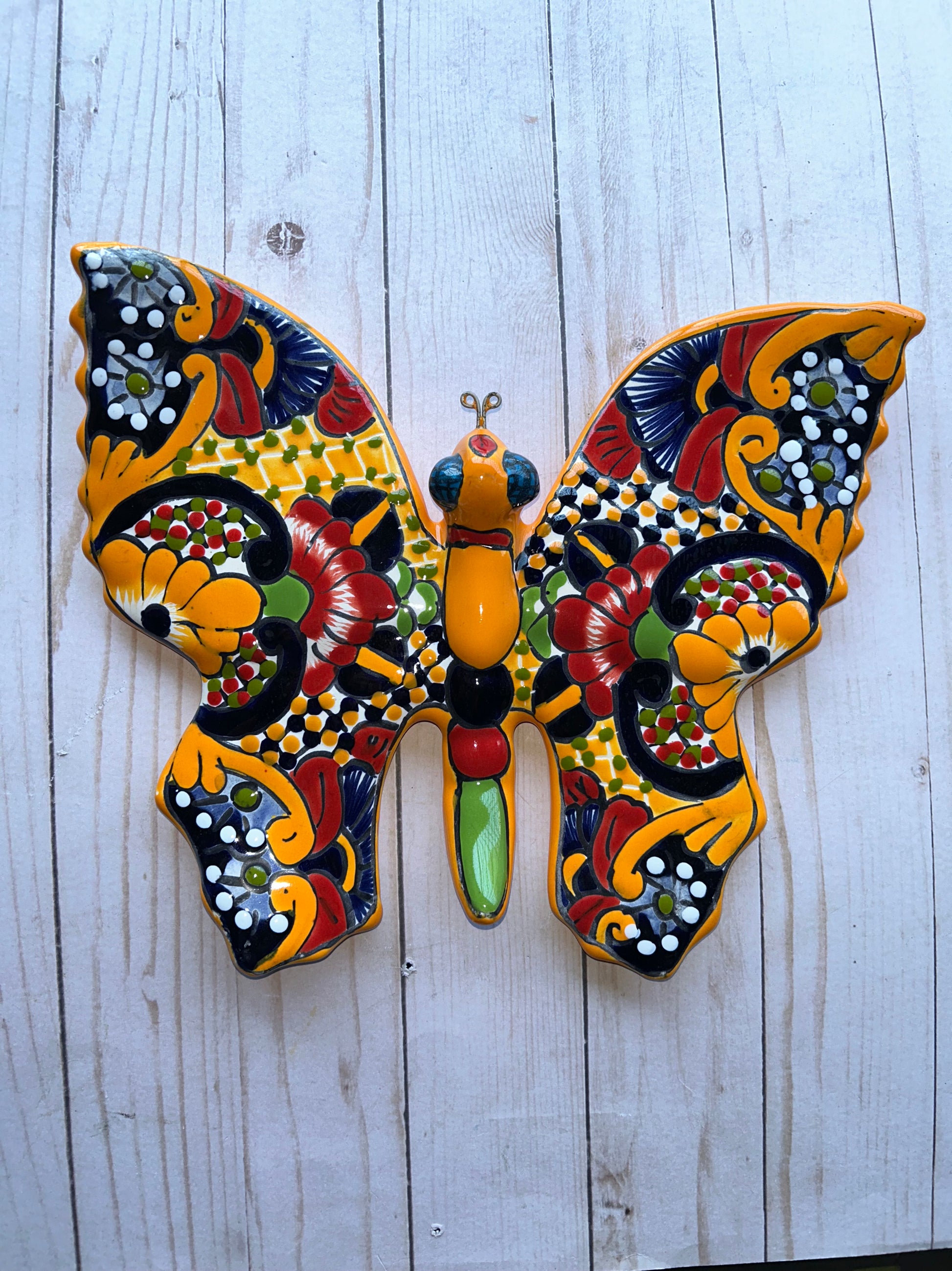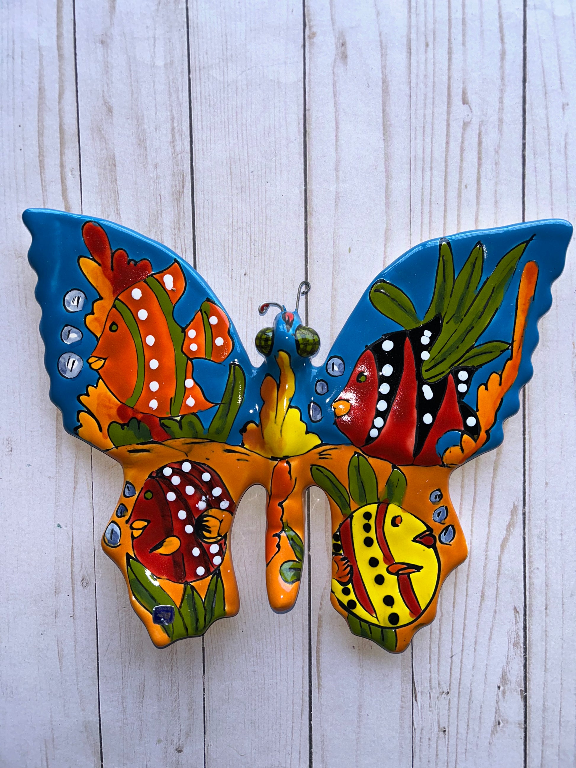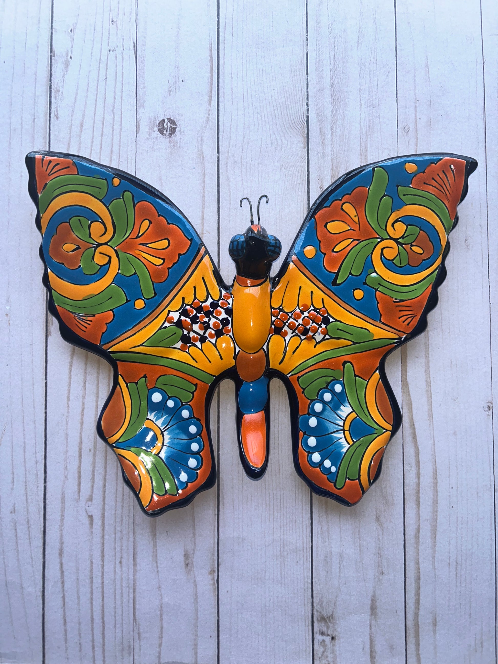 Beautiful Collection of wall colorful Talavera Butterflies, from our series of hanging art pieces, is an amazing way to easily light up any room or patio or garden area! Prepared with premade holes to make hanging simple, these Butterflies brings a radiant and colorful brightness to your home's walls, fences and gates!