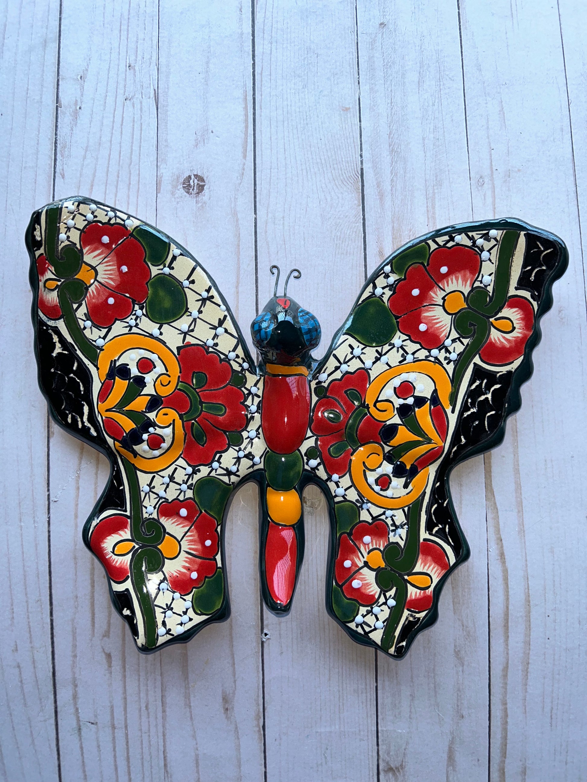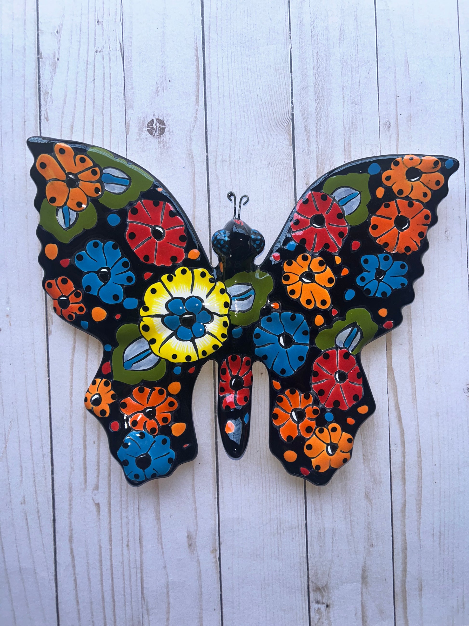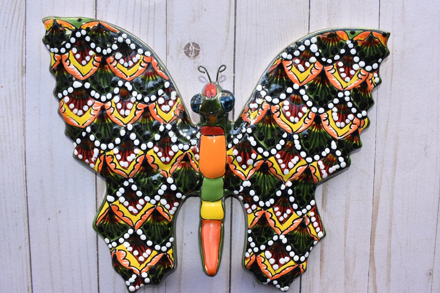 Beautiful Collection of wall colorful Talavera Butterflies, from our series of hanging art pieces, is an amazing way to easily light up any room or patio or garden area! Prepared with premade holes to make hanging simple, these Butterflies brings a radiant and colorful brightness to your home's walls, fences and gates!