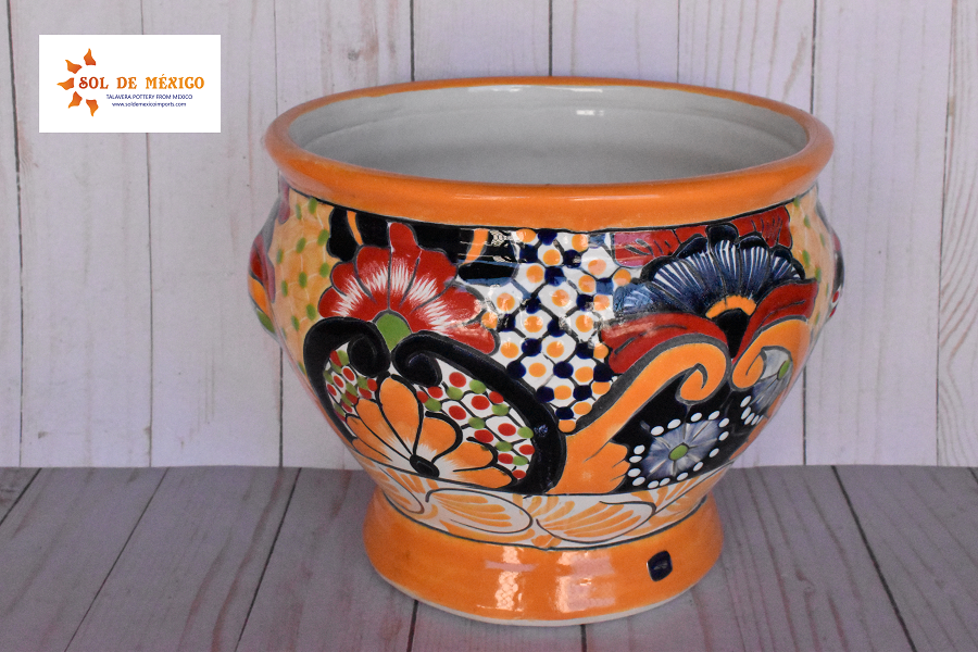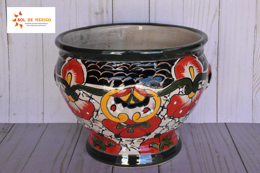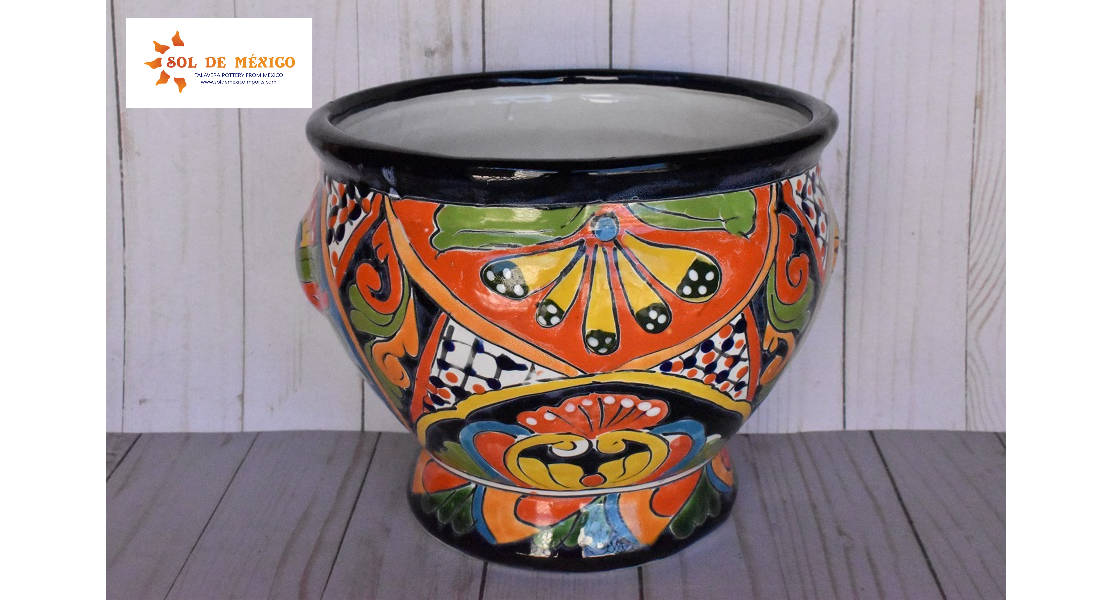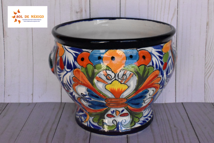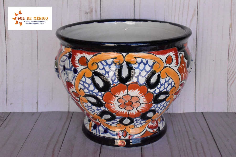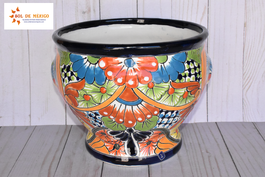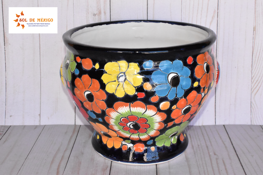 Beautiful small pots with short body style cup, elaborate and hand painted with multicolored floral and redesignated strokes that highlight the spacios of your house or gardens. This style of pot comes painted in different patterns and designs for you to choose your favorite color, all these pieces are cast and decorated by hand by Mexican artisans.
