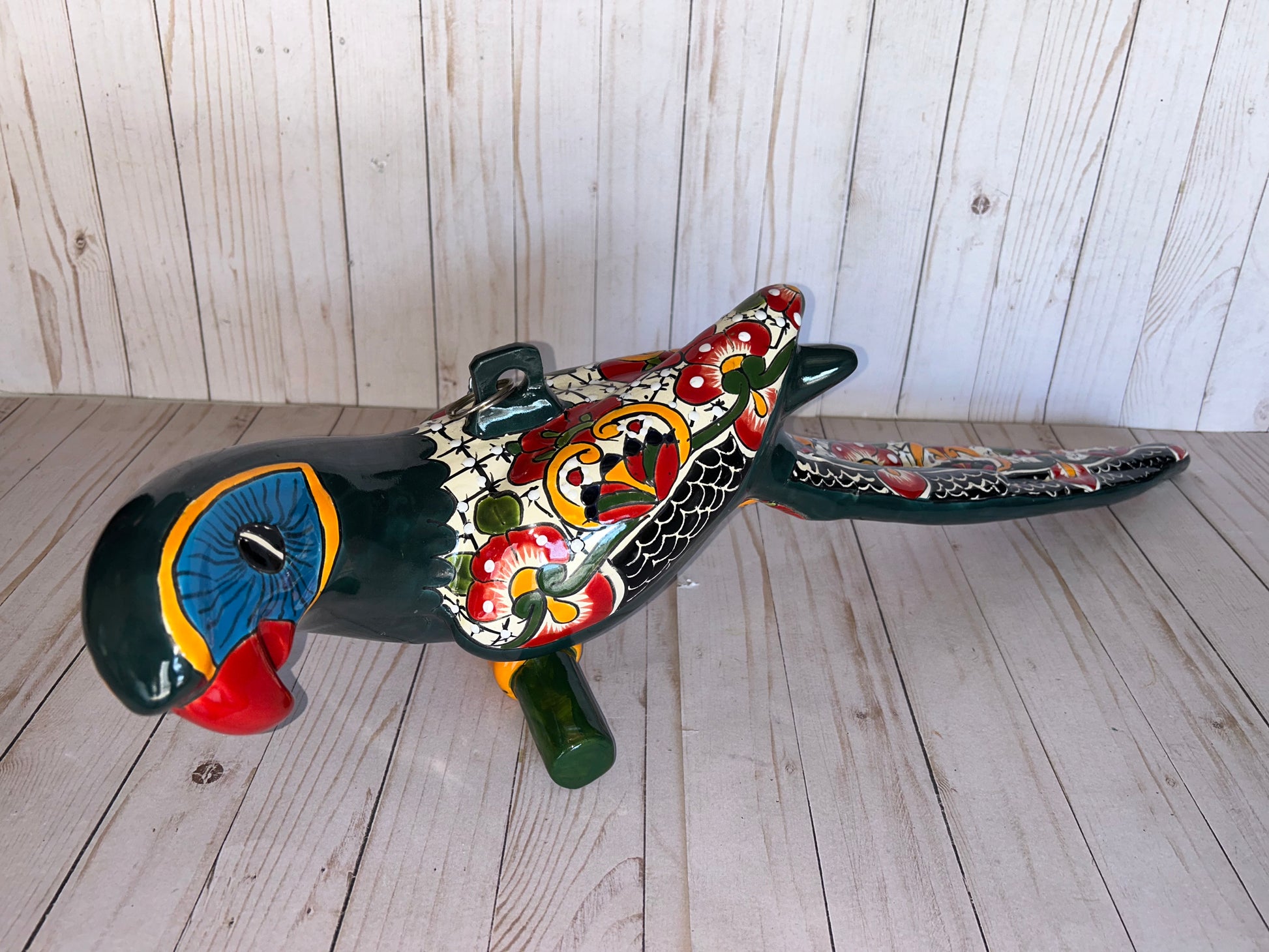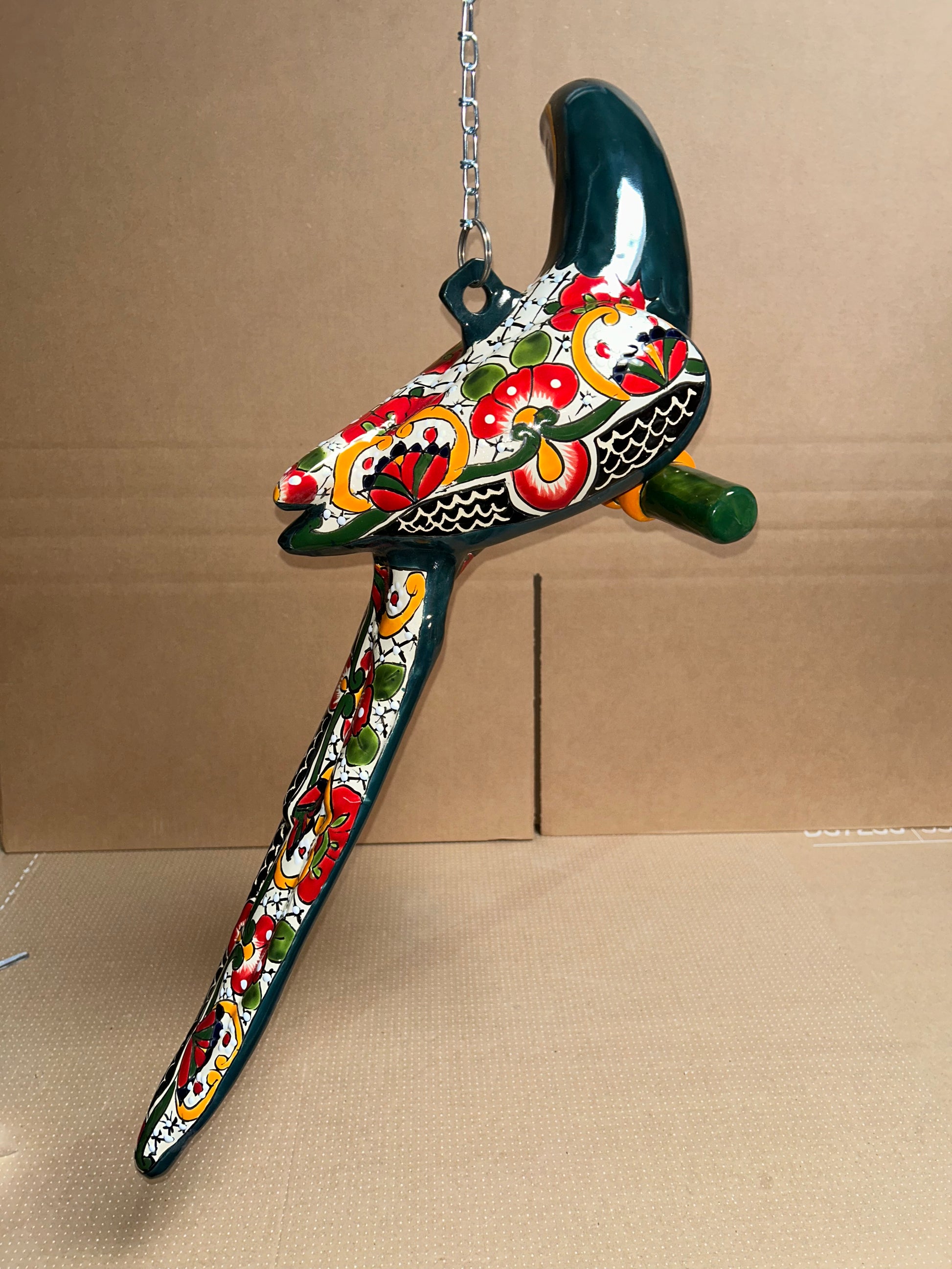 Add a touch of vibrant Mexican art to your home or garden with this beautiful Talavera Maya Hanging Parrot. Handcrafted and hand-painted by skilled artisans, each piece features bright colors, detailed and unique artistry that make it one of a kind. Perfect to hang indoors, on a patio, or in a garden space, this parrot brings joy, culture, and charm wherever it is displayed. 🌺🦜