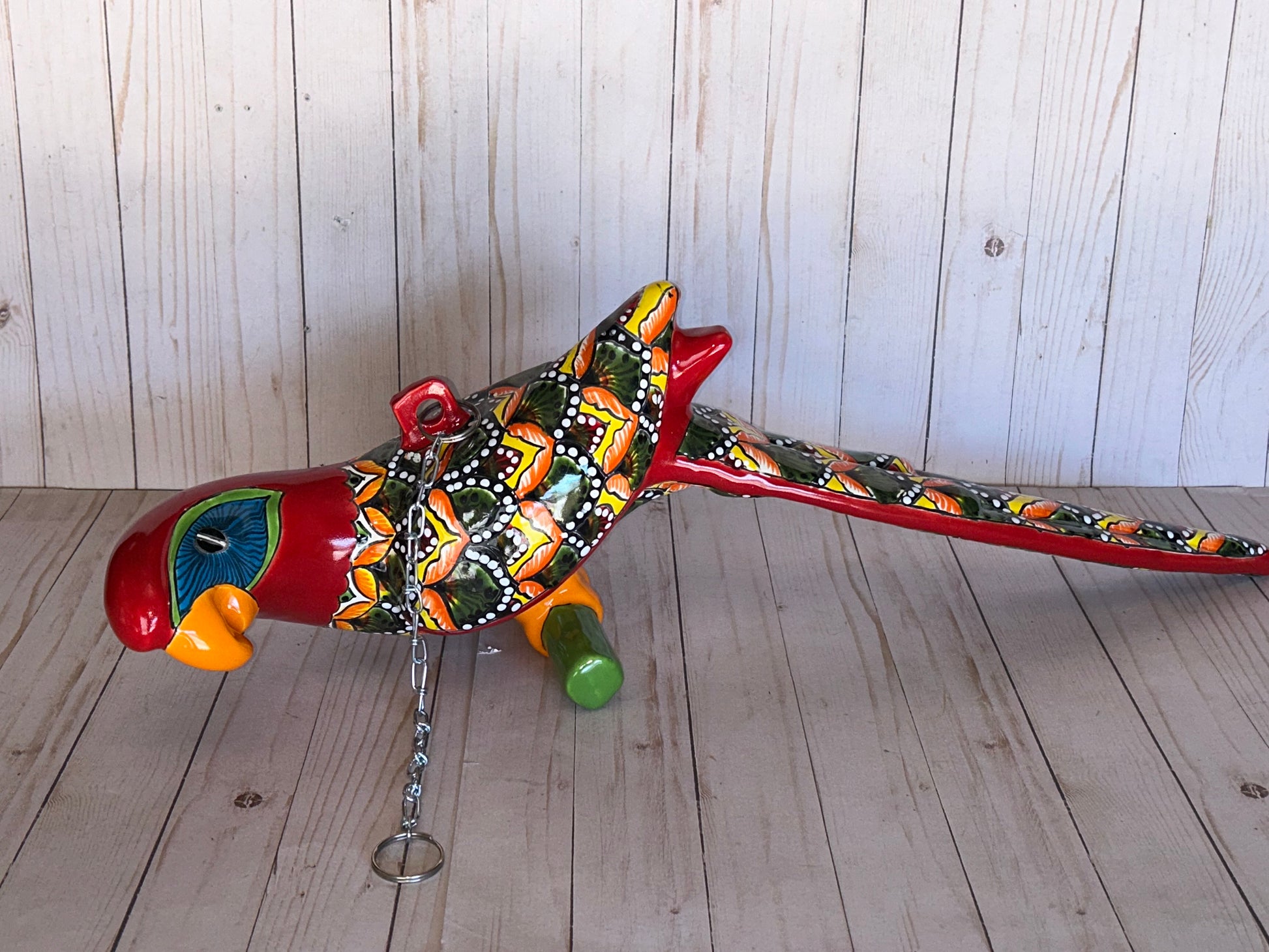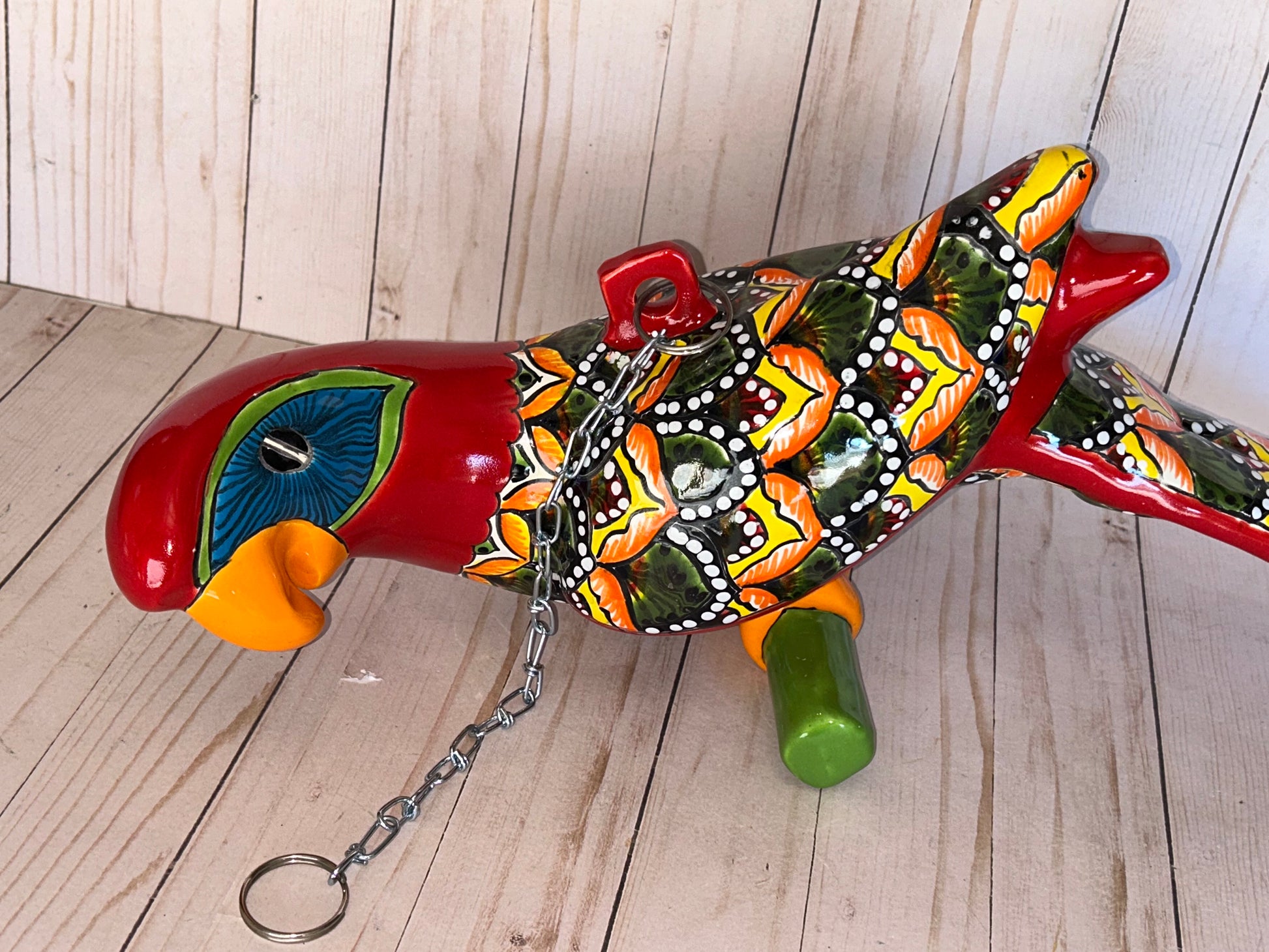 Add a touch of vibrant Mexican art to your home or garden with this beautiful Talavera Hanging Parrot. Handcrafted and hand-painted by skilled artisans, each piece features bright colors, detailed and unique artistry that make it one of a kind. Perfect to hang indoors, on a patio, or in a garden space, this parrot brings joy, culture, and charm wherever it is displayed. 🌺🦜