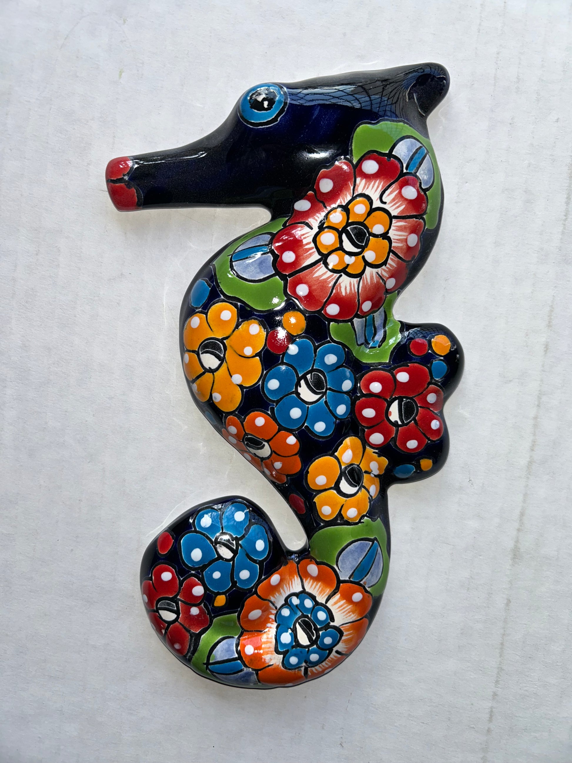 Bring a burst of coastal charm and vibrant Mexican tradition to your space with these exquisite Talavera seahorse wall hangings. Handcrafted by skilled artisans, each ceramic seahorse features bold, colorful floral and geometric designs that make it a true conversation piece.